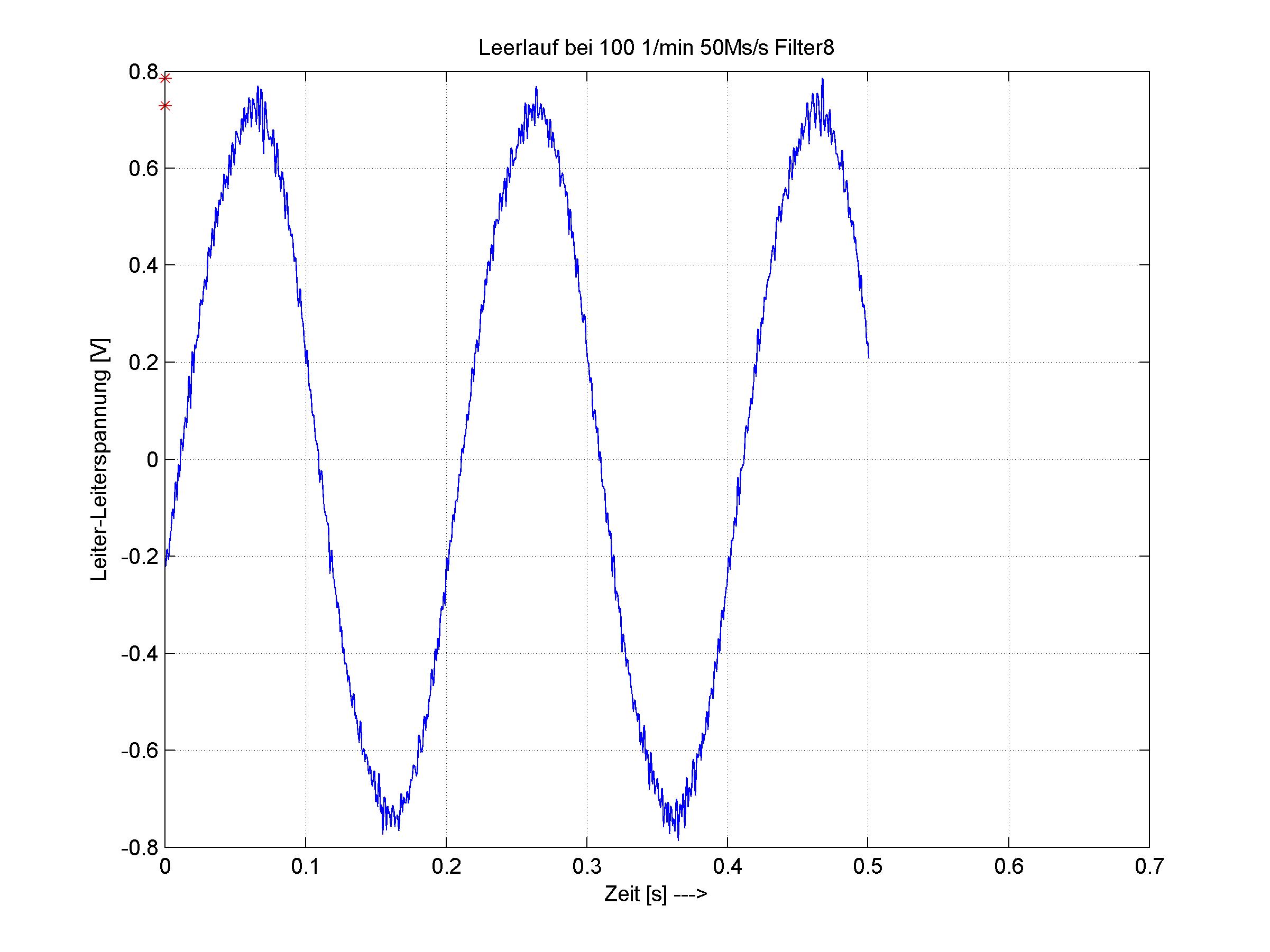 Mit dem Auge lässt sich die Amplitude immer noch ordentlich abschätzen. Nur wie bringe ich Matlab bei da einen "idealisierten" Sinus drüber zu legen um davon dann die Amplitude zu bestimmen? Das muss doch machbar sein, oder?