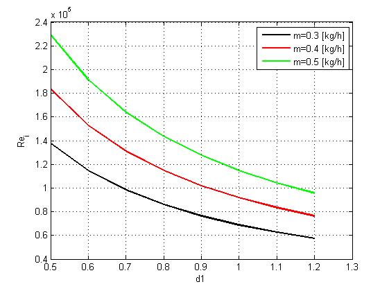 Und wie kann man diese 3 Vektoren dann am geschicktesten plotten, sodass eine Kurvenschar aus 3 Kurven entsteht, jeweils für einen Wert von m, wobei die Legende jeweils die eingegebenen Werte von m anzeigt (m sind verschiedene Werte von Massenströmen [Kg/h])?Die Werte von Re_i sollen jeweils über d1 dargestellt werden. Ich hoffe ich konnte mein Problem einigermaßen verständlich schildern und bin für eure Hilfe sehr dankbar. (Das Plottbeispiel ist angehängt)