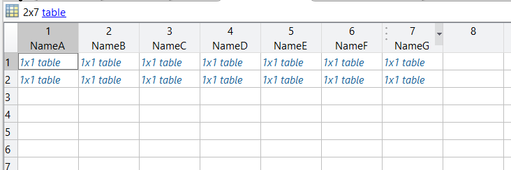 ich habe eine Tabelle wie auf dem angehängten Bild zu sehen. Ich möchte diese Tabelle gerne in eine Excel Datei mit writetable schreiben allerdings erscheint dann der Fehler: