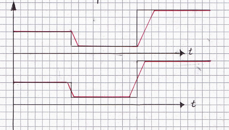 Ich habe eine Rechteckkurve (schwarz) und eine dieser folgenden "Folgekurve" (rot)