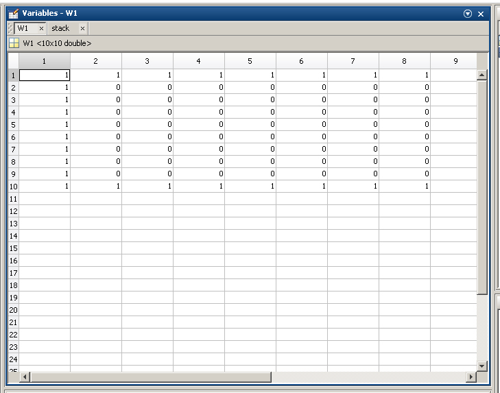 Da muss ich jetzt ein wenig spekulieren. Die "Columns Through" Darstellung ist die im Command Windowm Excel-artige die im Workspace Browser. Nur das mit dem "umschalten" verstehe ich nicht. Es sind zwei unterschiedliche Arten exististierende matrizen anzuschauen.