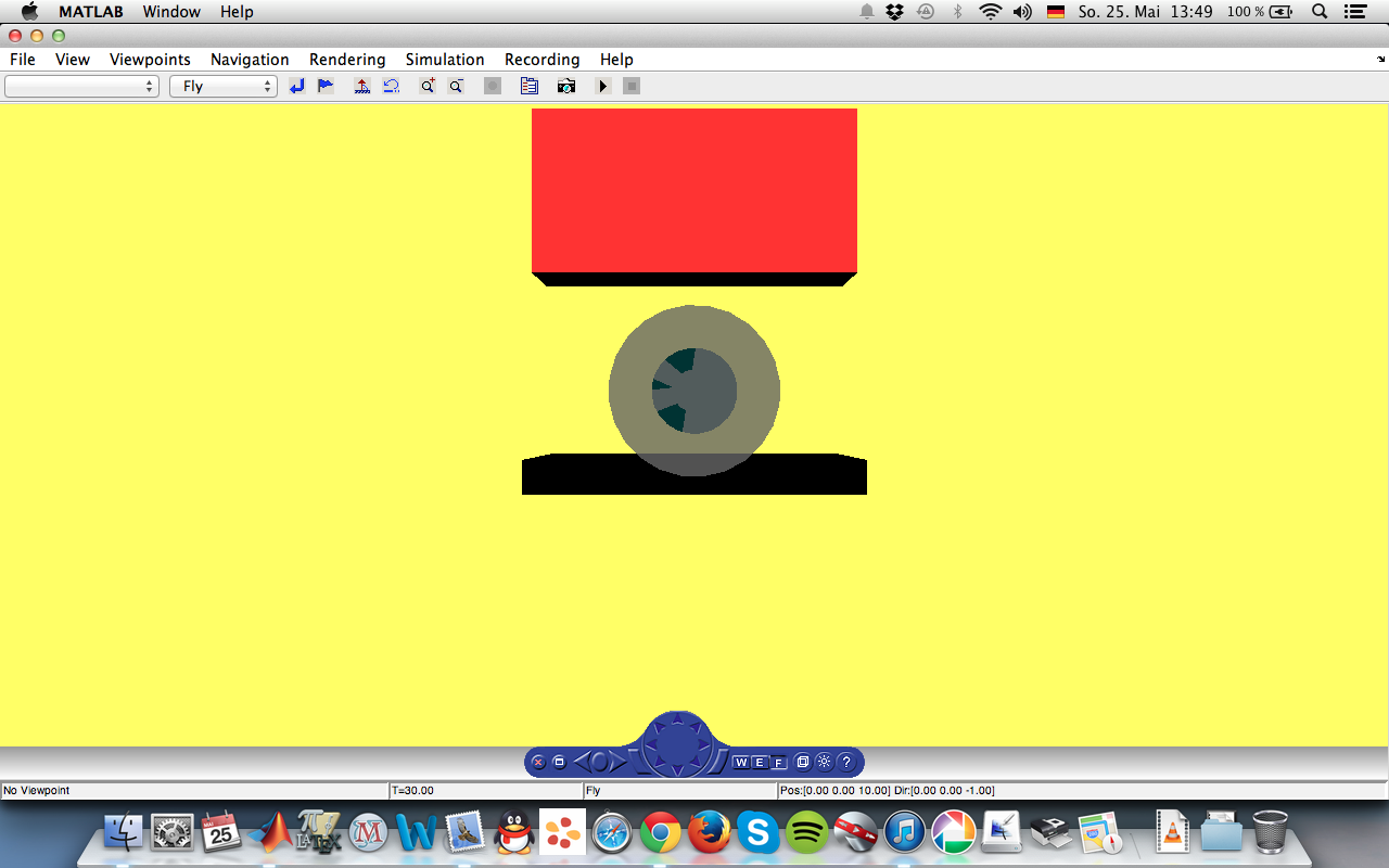 ich möchte die Wirkungsweise mehrerer geregelter Dämpfungssysteme eines PKWs mit der Virtual Reality Toolbox von Matlab/Simulink darstellen. Dabei sollen auch unterschiedliche Störsignalfunktionen (also unterschiedliche Straßenbegebenheiten, Sinus, Step, Random et.c) untersucht und visualisiert werden werden. Das Fahrzeug stelle ich im sog. Viertelfahrzeugmodell dar, d.h. ich kann die Karosserie und das Fahrwerk als zwei unabhängige Massepunkte betrachten und deren Vertikalbewegung ziemlich einfach mithilfe eines VR Sink Block visualisieren, indem ich deren y-translation als Eingang wähle.