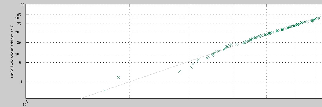 In der Hilfe zur "Weibull Distribution" war ein Beispiel angegeben, bei dem die 63,21% Prozentlinie eingetragen wird.