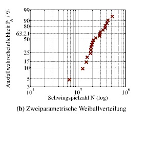 Ich habe meine Versuchsreihe durchgeführt und möchte diese nun in einem Wahrscheinlichkeitspapier darstellen. Dabei möchte ich die Ausfallwahrscheinlichkeit auf der Ordinate (mit der Wahrscheinlichkeitsnetzeinteilung) und die Werte auf der Abzisse (log (N)) plotten.