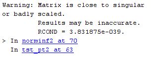 2. Wenn ich 2e-20 und diese Warnung lesen, dann kann es natürlich auch grundsätzlich numerische Probleme geben. Meistend kann man die Gleichungen dann umskalieren, so dass die verwendeten Grössenordnungen nicht so stark auseinanderliegen.