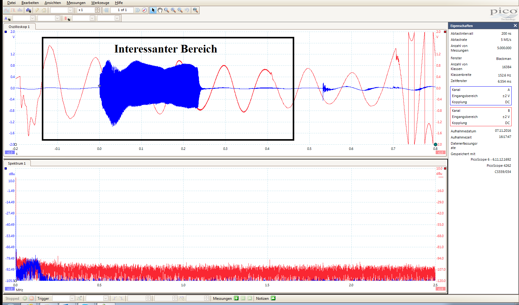 20kHz Eingangssignal einer mechanischen Bearbeitung.