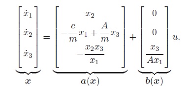 das Problem ist, dass die Zustandsraumdarstellung x_punkt = A*x + B*u so nur für lineare Systeme angegeben werden kann. Dein gegebenes System ist aber nichtlinear ( durch x_3_punkt=...). Hier besteht die Möglichkeit des System um einen bestimmten Punkt (typischerweise um eine Ruhelage) zu linearisieren. Diese Linearisierung ist dann aber nur eine gute Approximation des originalen Systems, so lange sich das System in der Nähe der Ruhelage befindet.