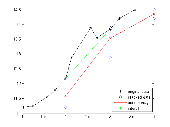 ihr habt natürlich Recht, eine Interpolation ist der richtige Ansatz, da dadurch die Messwerte keinen Offset bekommen (das sieht man wirklich gut an Nras' Plot). Also hab ich die Variante mit