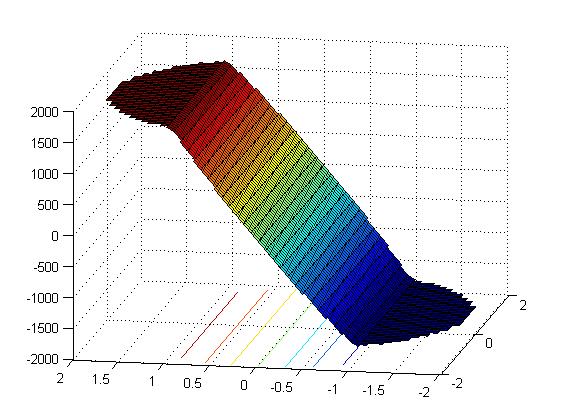 Ich gebe mir das Ergebnis über surfc(z,y,x) aus, was soweit alles auch funktioniert. Allerdings erscheinen ja nun logischerweise auch die Randbereiche in den Ecken, die nicht wirklich definiert sind. Der Kreisquerschnitt hat z. B. einen Radius von 10; das heißt, der Punkt y=10; z=10 fällt aus dem Bereich heraus, wird aber im Diagramm dargestellt bzw. auch von der Funktionsvorschrift berechnet. Ein Wechsel ins Polarkoordinatensystem ist leider ausgeschlossen, da ich die beiden Koordinaten brauche.