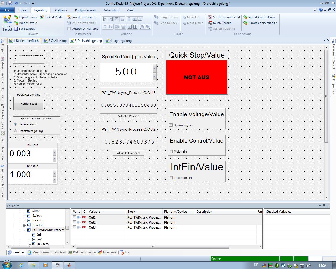 Dabei soll ein Servomotor, der eine Linearachse antreibt, gesteuert bzw. geregelt werden. Die Bedienoberfläche ist dabei mit DSpace Controldesk zu realisieren. Es handelt sich um ein Folgeprojekt und sich in die Materie einzuarbeiten gestaltet sich schwieriger als gedacht.