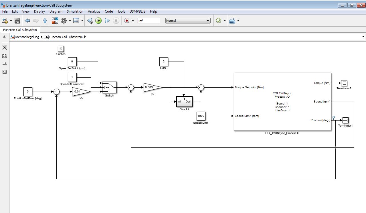 Die Lageregelung ist soweit fertiggestellt. Jetzt sind wir gerade dabei die Drehzahlregelung zu programmieren.