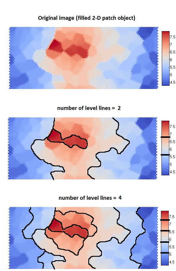 | Ein Patch-"Bild" und die Höhenlinien (Contour lines) in das Patch eingezeichnet. |