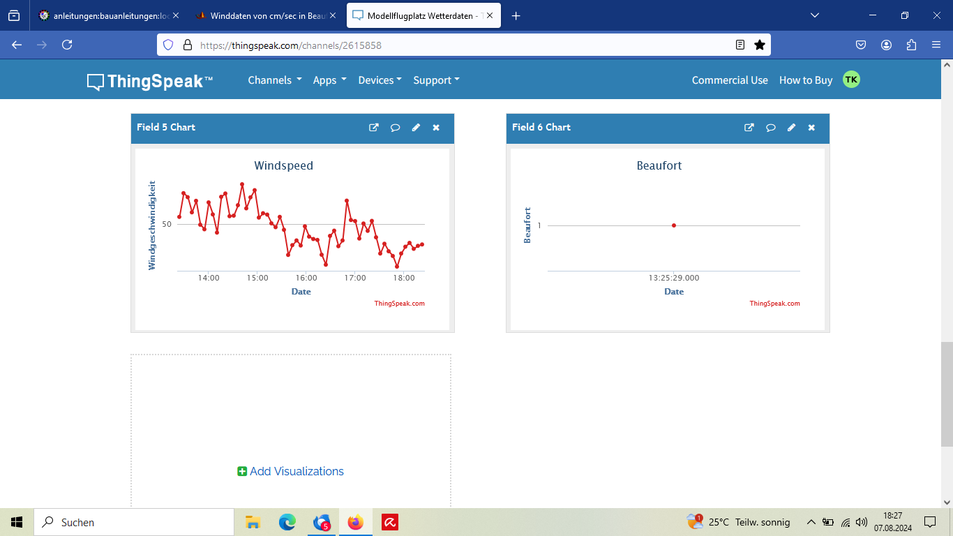 Falls das in Beaufort höher oder niedriger sein sollte, bitte genauer angeben was wie sein sollte. Bitte auch den verwendeten Code angeben. Falls man den auf ThingSpeak einsehen kann, weiß ich zumindest nicht wie.