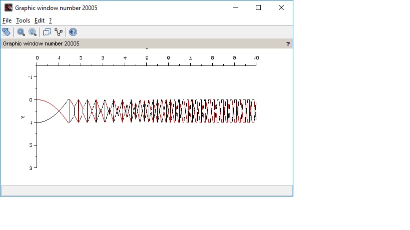 ich habe ein eigenartiges Grafikproblem. Nach dem Umstieg auf Windows 10 (Neuinstallation) und dem Installieren von Scilab 5.5.2 bekomme ich bei Verwendung von XCos selbst mit den integrierten Beispielen in sich gespiegelte Achsen. Ich hänge ein Bild an - es handelt sich um das Beispiel INTEGRATOR_m_1_Example.