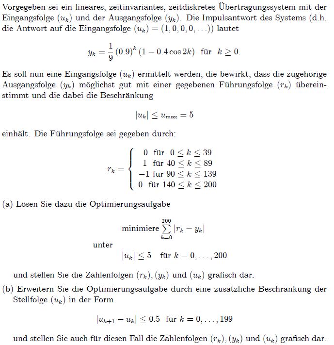 könnte mir bitte jemand bei diesem Optimierungsproblem im Anhang helfen? Habe dieses mit YALMIP zu lösen, komme aber nicht auf die nötigen Nebenbedingungen. Vielen Dank schon einmal!