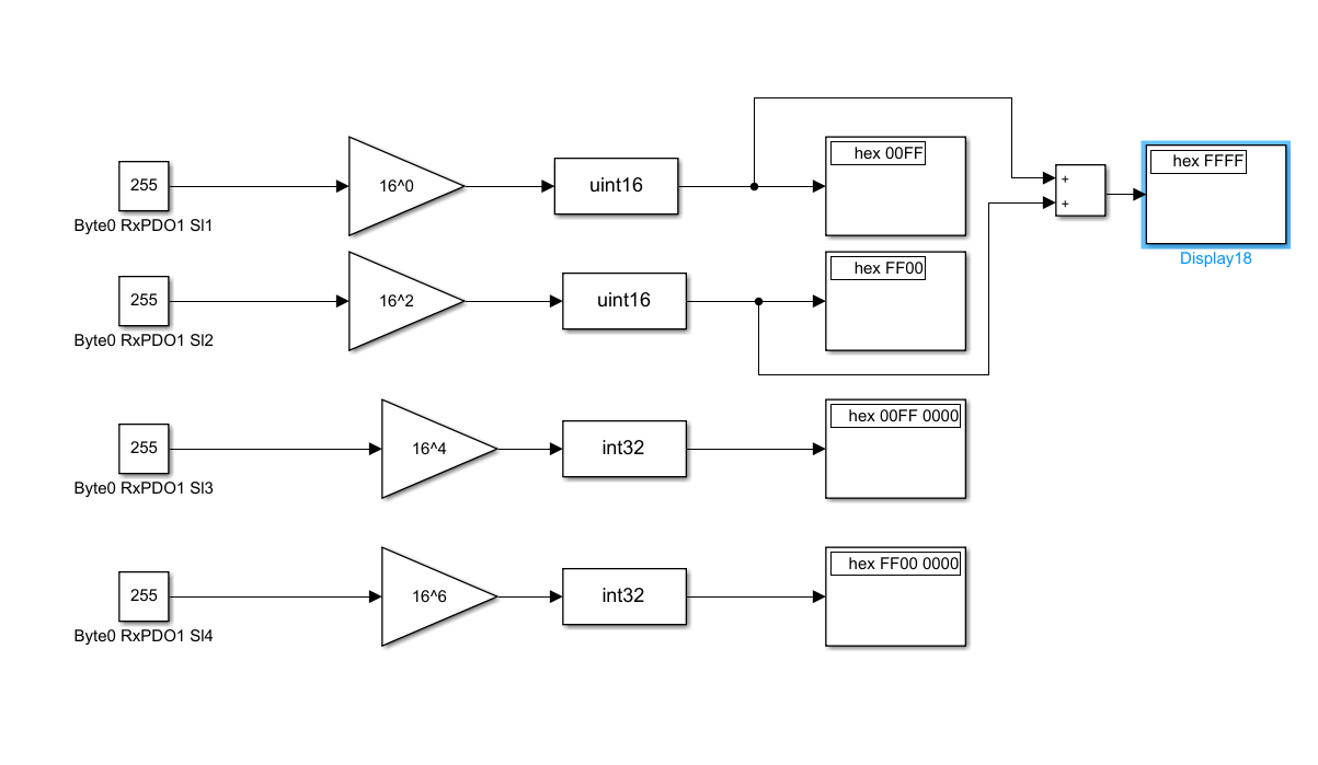 Ich nutze deutlich mehr MATLAB als Simulink und wenn, dann kaum Hexadezimalzahlen. In dem Beispiel aus der Doku würde ich so vorgehen, Teile mit entsprechenden Vorfaktoren zu multiplizieren und zu addieren.