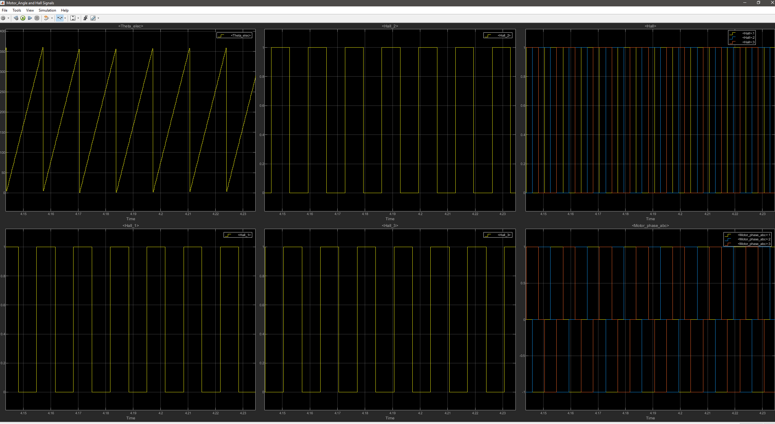Ausgabe dieses Subsystems sind meine drei Hall-Signale zu "berechnen" was auch super funktioniert.