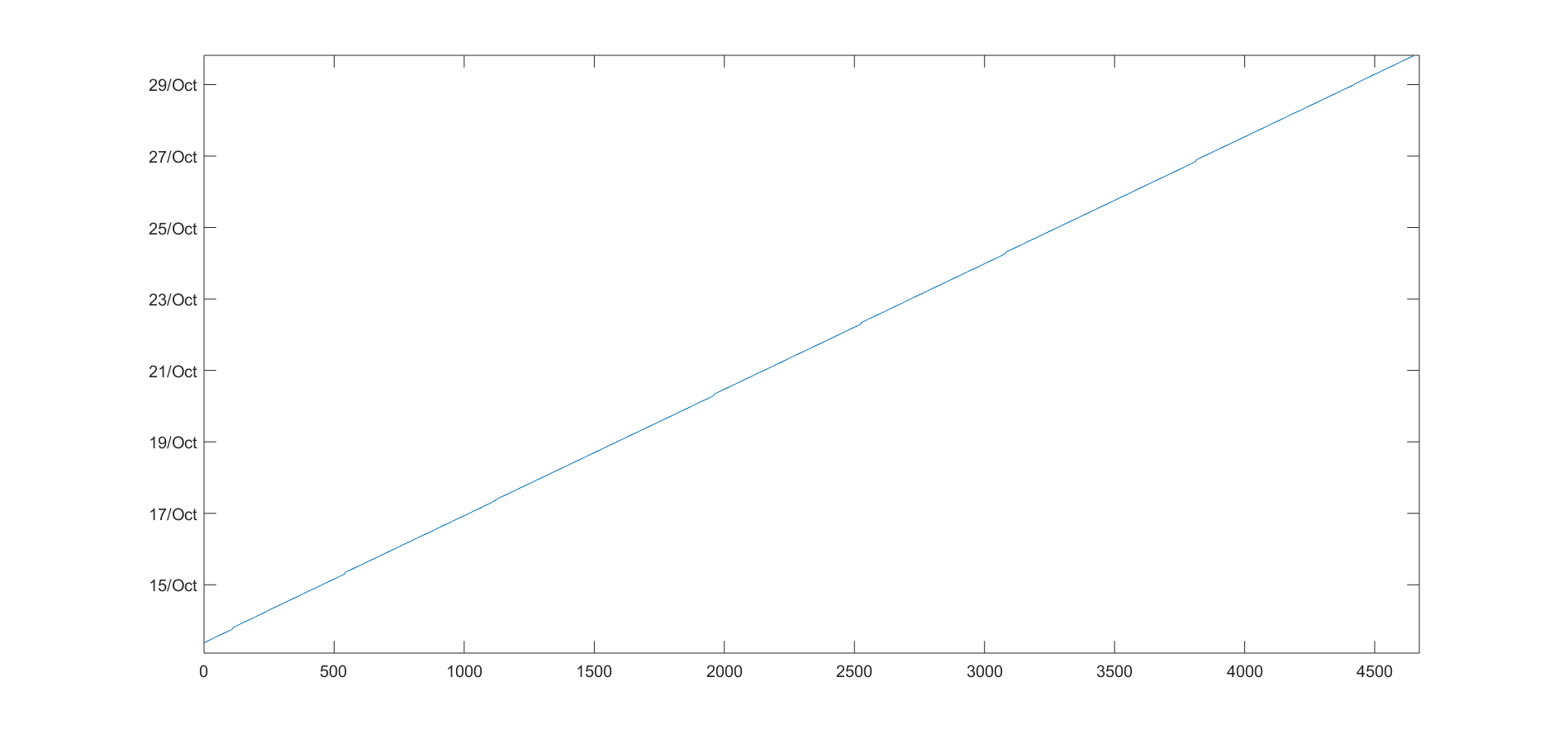 retime scheint mir hier jedoch die Zeit anzunaehern statt sie fortzufuehren. Hinzukommend packe ich meine Zeitstempel stets in double Matrizen mit matlab zeitstempel; ich muesste also eigentlich nur das delta der matlabzeitstempel erkennen lassen und im Falle von unterbrechungen dieses fortfuehren..meiner Meinung nach wuerde mein erster Ansatz weiter oben dies erfuellen koennen, sofern ich diesen "auf Matlabzeit" beziehen kann und von den integers wegkomme. Was ist deine Meinung dazu?