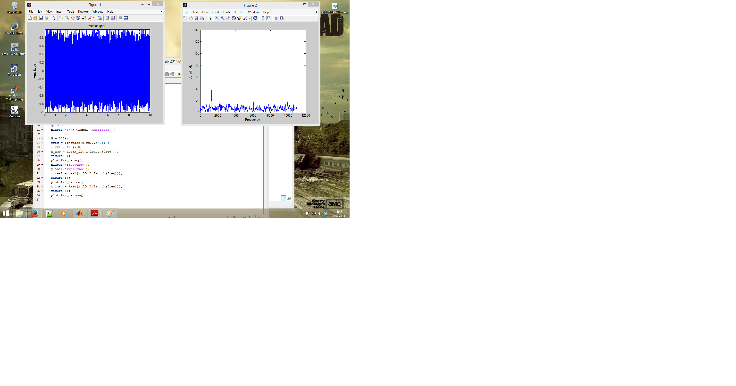 Ich habe ein Rechtecksignal, welches durch weisses gaussches Rauschen gestört wird (additiv). Das Signal liegt als *.wav Datei vor. Aus dem Spektrum kann man erkennen, das es sich um ein 400Hz-Nutzsignal handelt. Ich soll Nutz -sowie Störsignal trennen, bin aber mit meinem Wissen am Ende. Über eine Hilfestellung würde ich mich sehr freuen.
