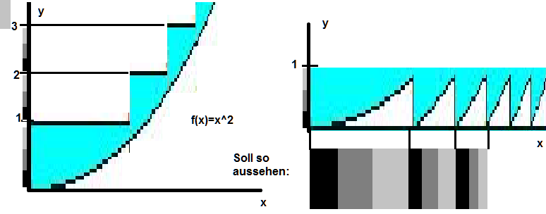Nun möchte ich auch die Zwischenwerte mit einbeziehen. Diese Zwischenwerte sollen als 8bit-Grauwert dargestellt werden.