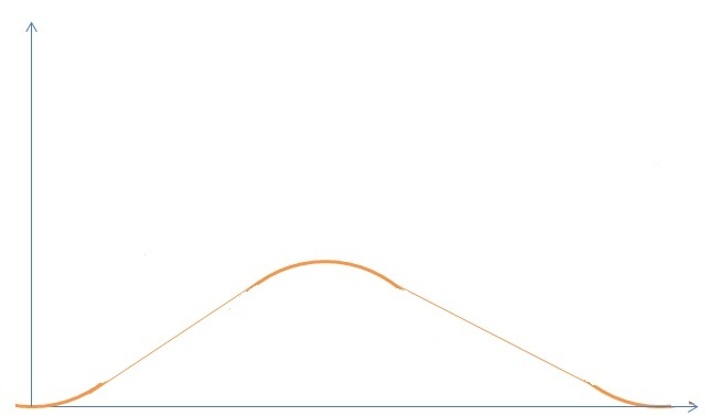 Die zusammengesetzte Funktion besteht aus einfachen Formen (Kreisbögen und Geraden mit Steigung)